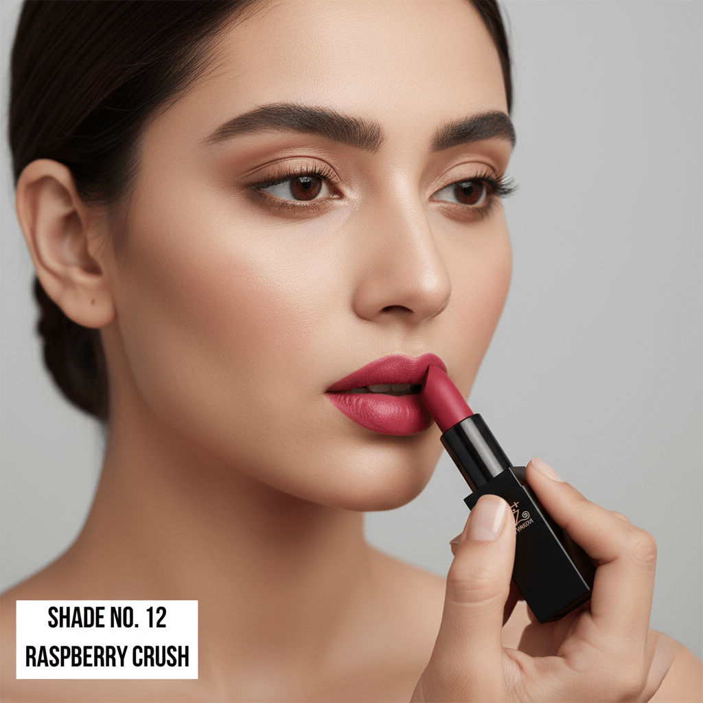 Discover the bold elegance of Onlyna Raspberry Crush (Shade No. 12). A long-lasting, high-pigment matte lipstick available at Nikhaar International. Perfect for professional and daily looks.
